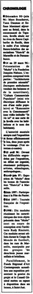 On est pas des gobies EXPOSITION « PROSISMIC » Marseille révélée par l’art contemporain BIENNALE DE L’URGENCE EN TCHÉTCHÉNIE L’art FATAL Chronologie…